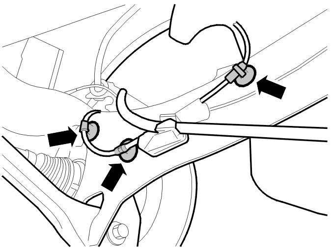 Hint: Note on which side of the lateral link the cable and cable harness must be positioned.
