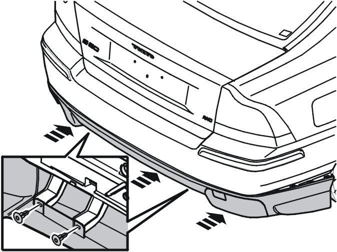 Note! If the vehicle was not previously fitted with a spoiler then these holes must be drilled with a 5 - mm bit. Use the bracket holes as templates.