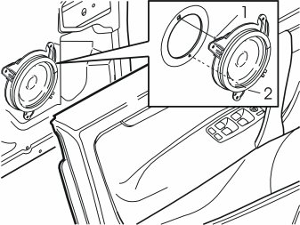 - Remove the loudspeakers and any rivet swarf from the rivet holes. Remove the rivet sections from the door if necessary.