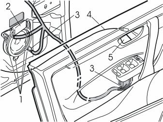 - Connect the connectors (3) to the loudspeaker and the module for the door controls