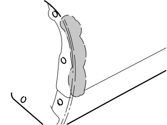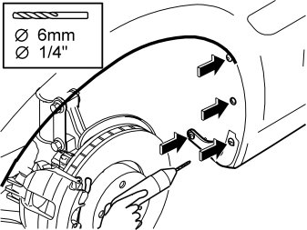- Carefully drill out the four rivets holding the rear edge of the bumper liner at the front edge of the front bumper. Use a - 6 mm (1/4 ") drill bit.