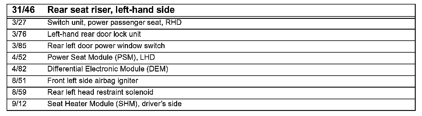 31/46 Ground Connection, Rear Left Seat Riser: