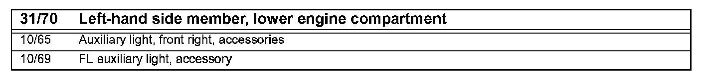 31/70 Ground Connection, Left-Hand Side Member, Lower Engine Compartment: