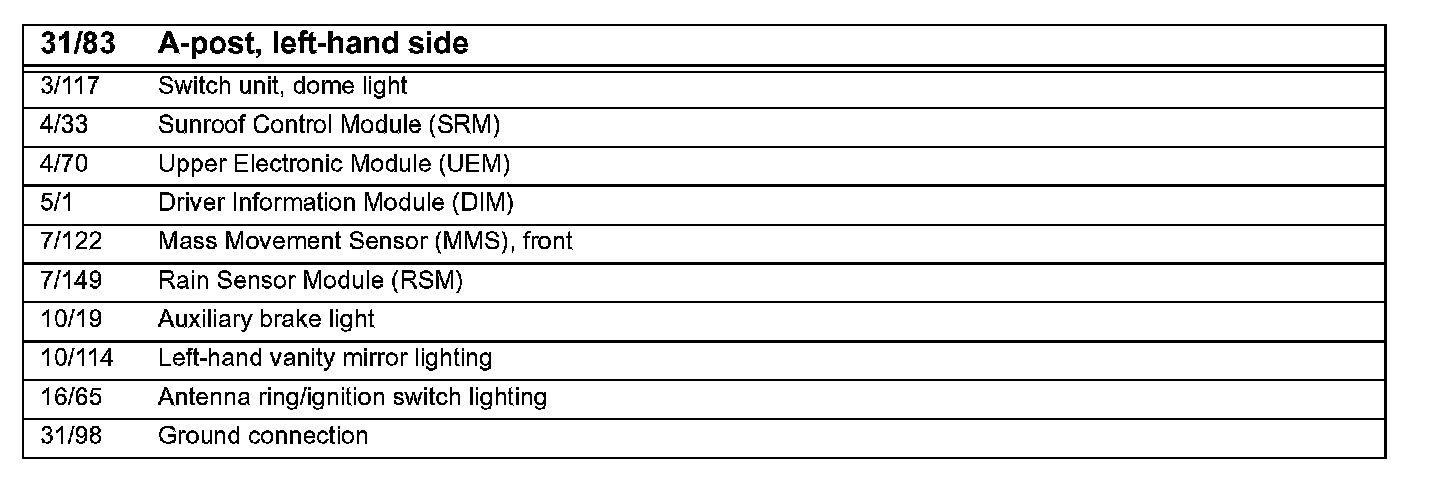 31/83 Ground Connection, Left-Hand Side A-Post: