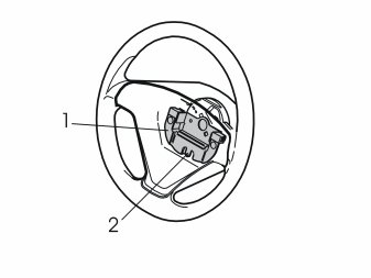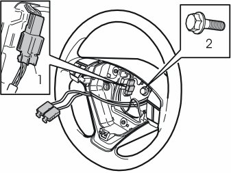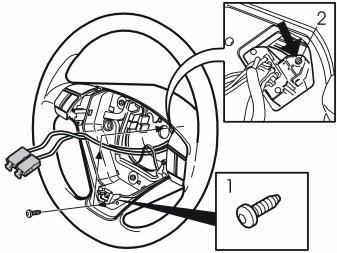- Remove the connector for the RTI keypad mounted to the steering wheel. Press in the catch (1) and pull out the connector.