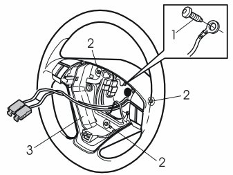 - Insert a screwdriver in the hole (2) on the reverse side of the steering wheel at right angles to the rear surface.