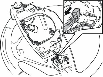- Plug in the keypad connector to the terminal on the reverse side of the keypad located on the right-hand side of the horn ring. The wire from the installed keypad is very short and it can be difficult to install the connector.