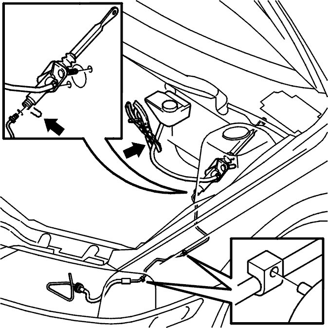 Disconnect the pipe from the cylinder by removing the retaining clip. Then pull the pipe out of the cylinder.