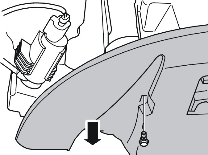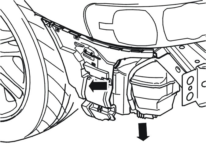 Carefully tension out the bumper guide. Lower the windshield washer reservoir.