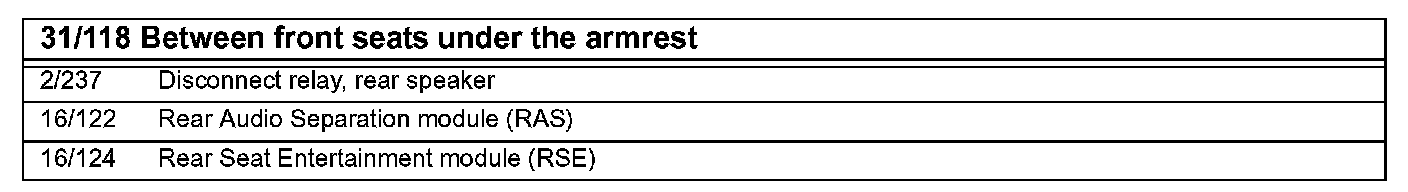31/118 Ground Connection, Between Front Seats Under The Armrest: