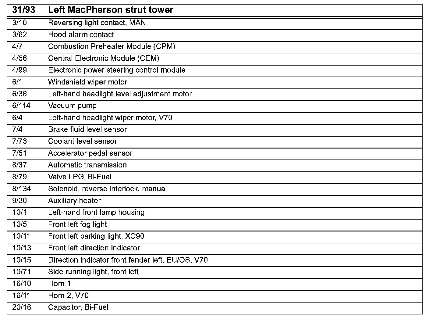 31/93 Ground Connection, Left MacPherson Strut Tower: