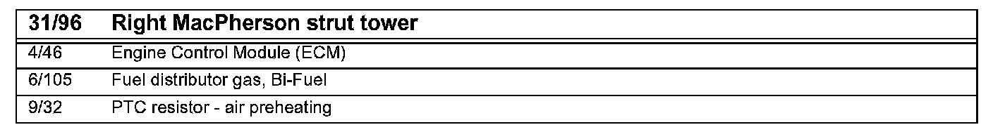 31/96 Ground Connection, Right MacPherson Strut Tower: