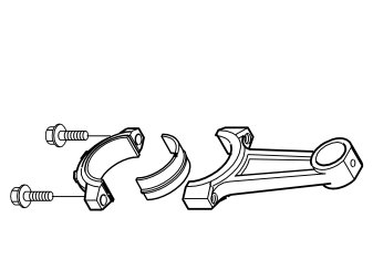 Install the cap. Check that any markings correspond. Lubricate and install new screws. Tighten the connecting rod cover. Refer to Specifications, B8444S Tightening Torque