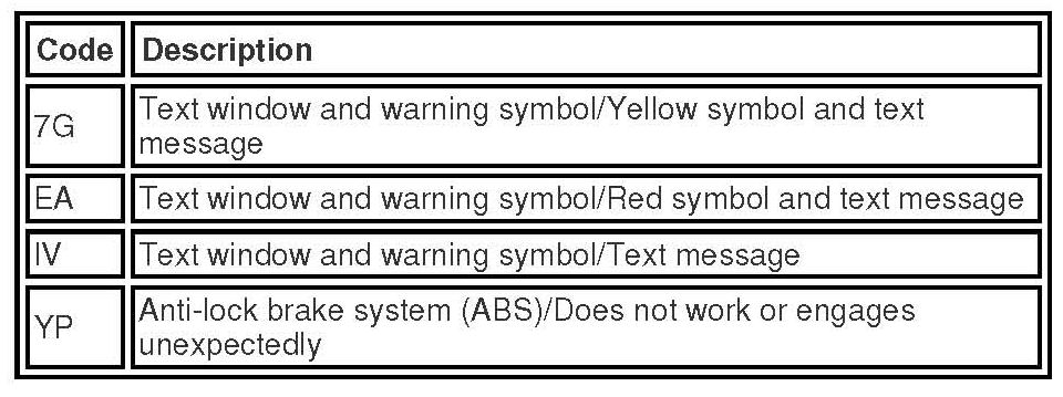 It may happen that metal particles get trapped on the magnetic ABS (Antilock Brake System) encoder ring (located on the rear wheel hub) which may cause a "Brake service required" message in DIM (Driver Information Module). BCM (Brake Control Module) codes 0032 0042 C003607 or C003707 could be stored in the BCM.