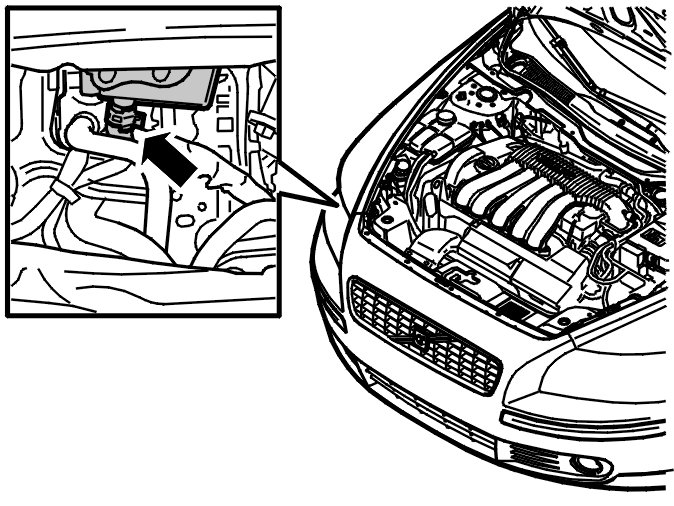 Drain the fluid reservoir. Use an oil suction device. Remove the right-hand headlamp. See Headlamp bulb Headlamp Bulb Headlamp bulb Headlamp Bulb.