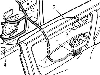 - Remove the three connectors from the module for the door controls (1) and from the loudspeaker (4)
