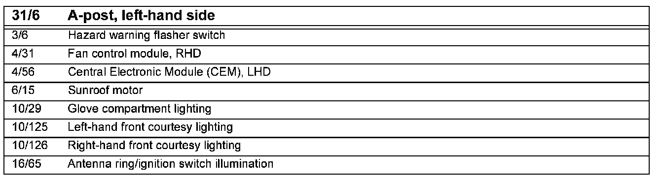 31/6 Ground Connection, Driver's Side A-post: