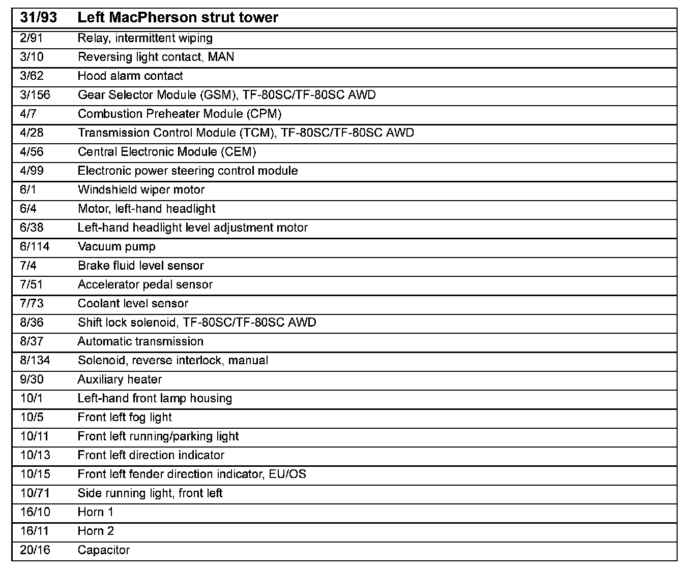 31/93 Ground Connection, Left MacPherson Strut Tower: