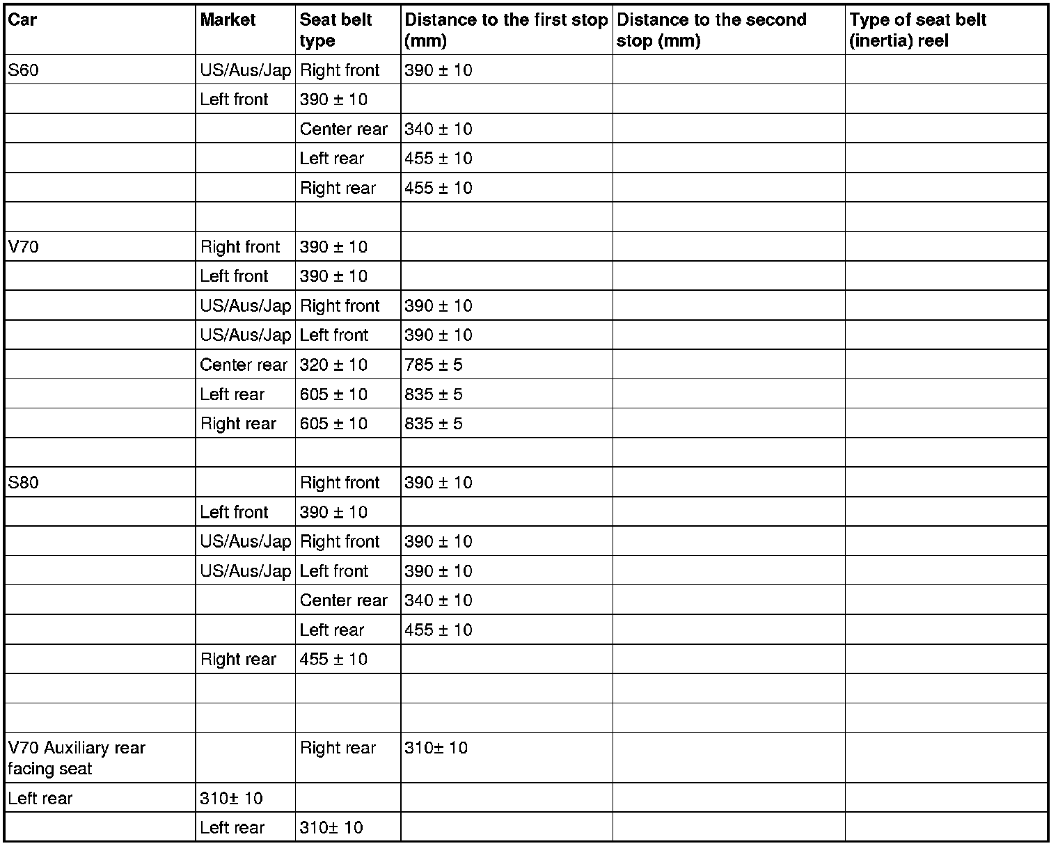 This method covers all stops positioned on seat belts in the vehicle. The function of the stop is to prevent too much strap from rolling onto the bobbin, making the belt difficult to operate and handle.