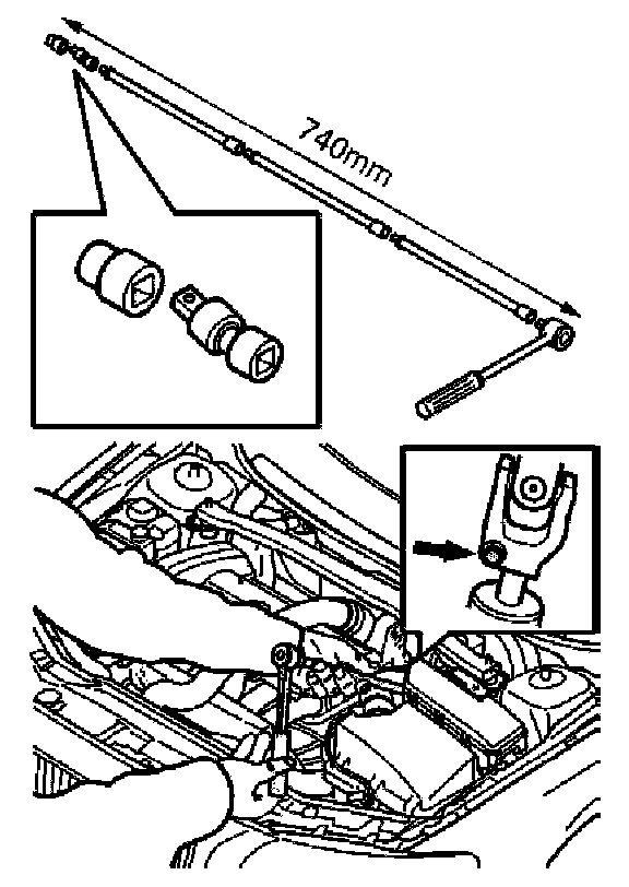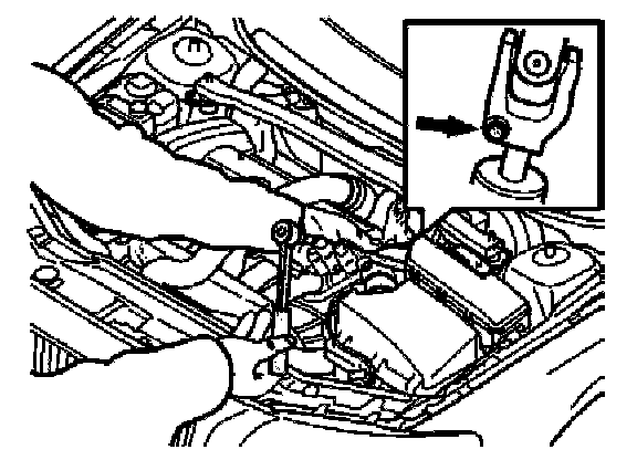 - Remove the screw on the lower steering shaft from the engine compartment. Use the tool as illustrated.