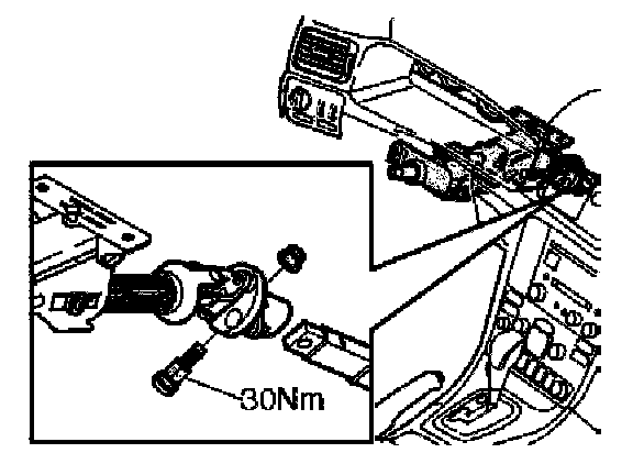 - Tighten the lower screw on the lower steering shaft in the engine compartment. Tighten to 25 Nm.