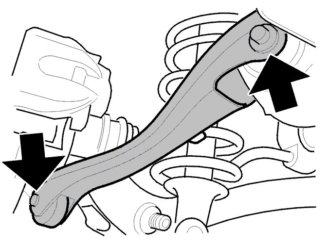 - the spring strut on the lower control arm. Use a larger jimmy bar to bend the lower control arm down and align the spring strut against the control arm.