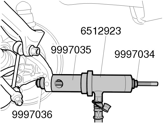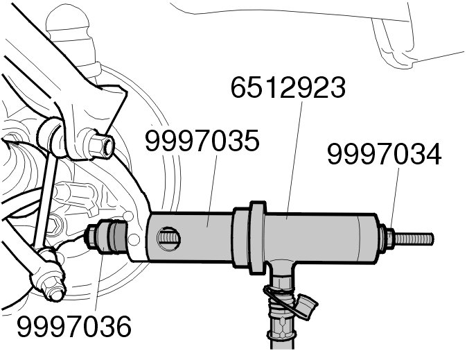 - Use tool 951 2923 Hydraulic hole cylinder 951 2923 Hydraulic Hole Cylinder with 999 7054 Adapter incl. 2x MC6C M6X12 999 7054 Adapter Incl. 2x MC6C M6X12 , 999 7035 Sleeve 999 7035 Sleeve , 999 7036 Drift 999 7036 Drift and 999 7034 Connecting rod M12X400 999 7034 Connecting Rod M12X400