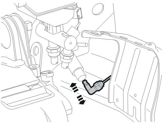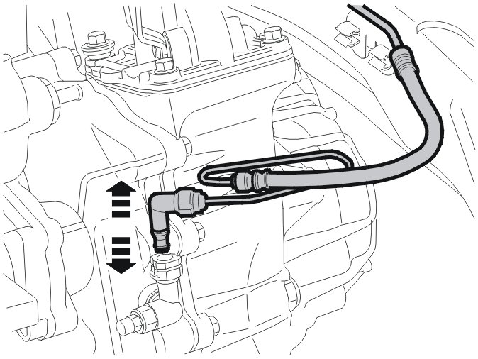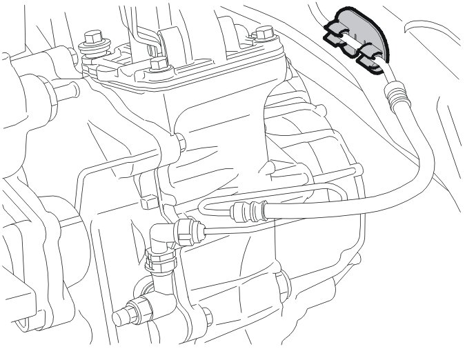 At the clutch cylinder, pull up the striker plate. Pull out the clutch line. Wrap the end of the pipe in paper to prevent spillage.
