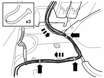 - Secure the antenna wiring to the cable harness using six cable ties, use the cable ties from the cable ties with lugs.
