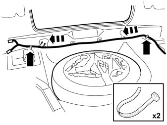 - Route the cable along the wheel housing. Install cable ties with clips to the panel flange.