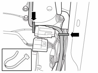 - Route the antenna wiring along the existing cable harness and secure with a cable tie.