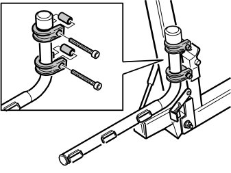 - Install a long screw and spacer in the mounting brackets. Install the brackets on the bicycle carrier's square tube in the existing nuts. Adjust the lower bicycle carrier to the desired position and tighten to 10 Nm (7.5 lb. ft.).