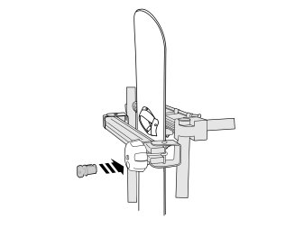 - Tighten in the ski holder using the two screws, the spring washers and the flat washers from the base unit kit.