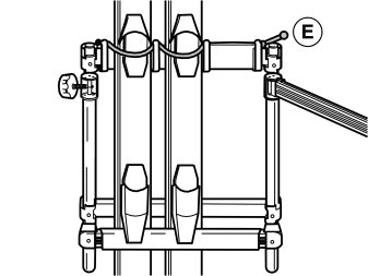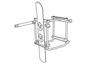 - Tension them in against the rear section using the rubber strap, (Illustration D), in order that they shall be held in place while more skis/snowboards are installed in the holder as well as when the attaching brace is closed.