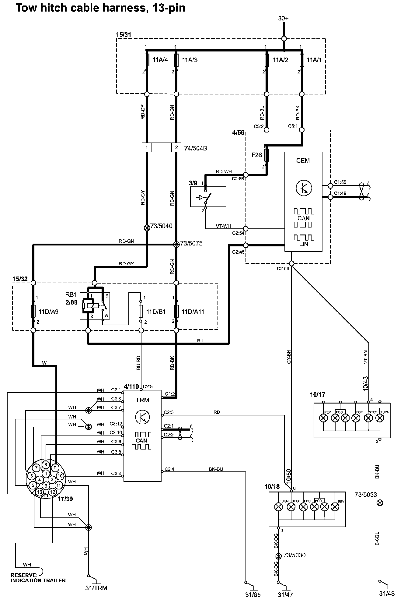 Tow Hitch Cable Harness, 13-Pin: