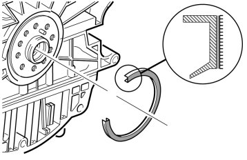 Caution! Cleaning must be directed around the crankshaft journal, not along it. Make sure that any residue from the emery cloth and any other foreign materials are completely removed before installing a new crankshaft seal.