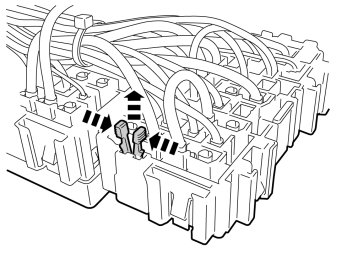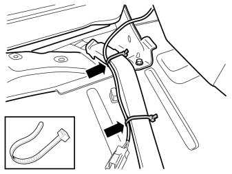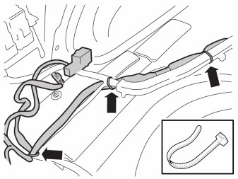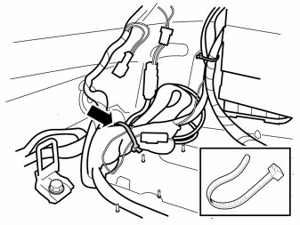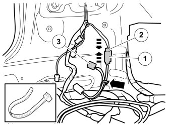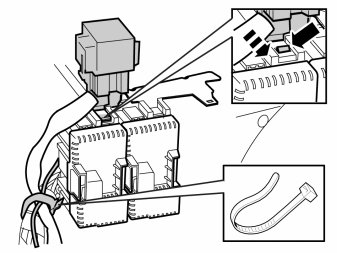 - Clamp in the cable harness to the existing cable harness using cable ties.