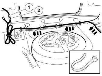 - Route the longer part of the cable harness along the rear trunk to the luggage compartment's right side.