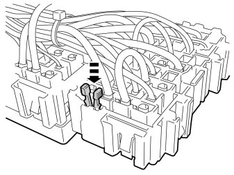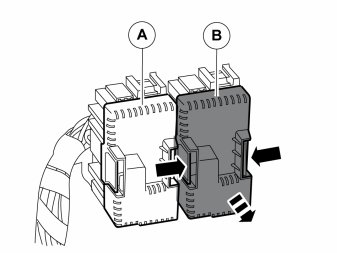 - Press together the shanks on the catch at the top of the module and pull it out.