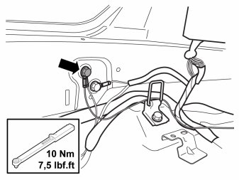 - Loosen the upper ground screw on the left side in the rear trunk. If the car is equipped with trailer hitch, a ground cable is already installed.