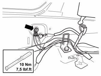 - Connect the ground cable from cable harness B and tighten the screw with 10 Nm (7.5 lb ft).