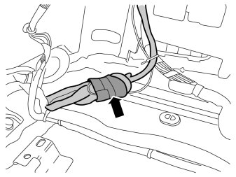 If the car is equipped with electric parking brake or media player, make sure that cable harnesses are clamped together and routed so that they do not chafe against the brackets for these.