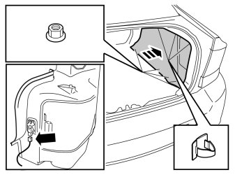 - Get four strip clamps with clips from the kit and press them into the holes in the rear trunk.