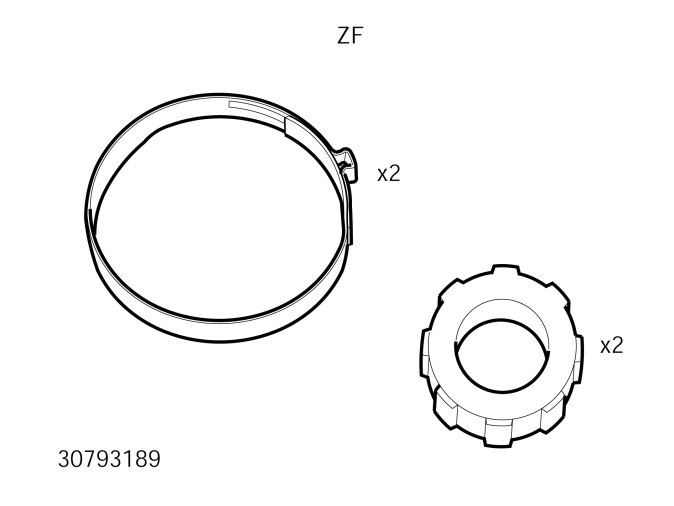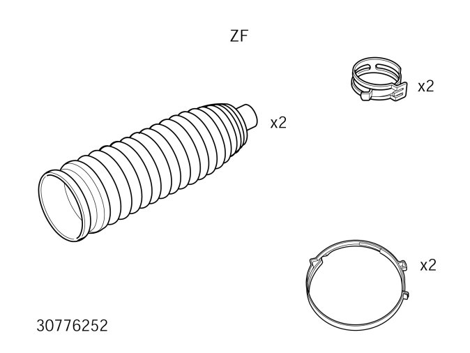 Note! All clamps and dust excluders must be replaced when installing a steering deflection limiter on cars with ZF power steering. Use the kit with part no. 30776252.