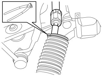 - Undo the inner track rod end from the power steering's rack. Use the information in VIDA under group "wheel suspension, steering, removing inner track rod end".