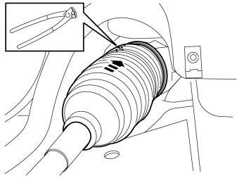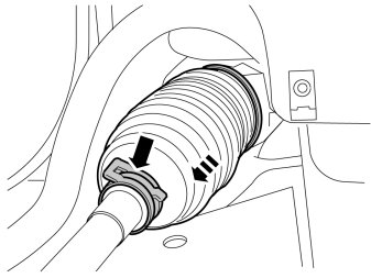 Hint: Slightly compress the large clamp with the pliers before fitting the dust excluder and clamp. This makes it easier to grip it with the pliers when the dust excluder is positioned. Do not compress so much that the dust excluder and clamp cannot be pressed on.