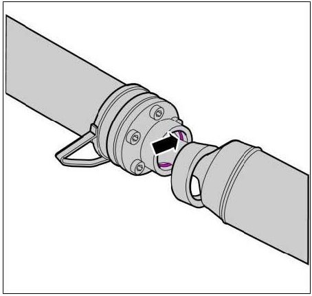 Cut a 35 mm (1 3/8") piece of discarded coolant hose or similar. Cut the hose to length. Insert the hose in the joint and secure it with a cable