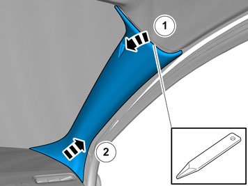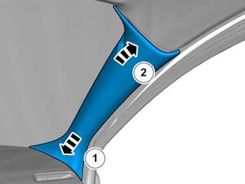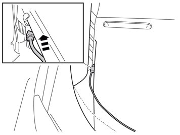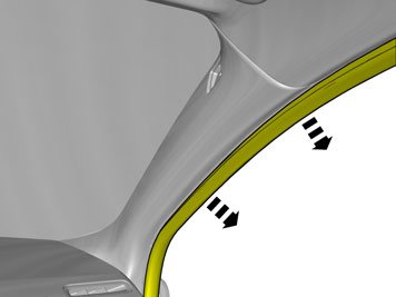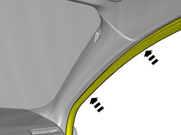 - Take a piece of butyl tape and lay it along the insulation mat and secure it against the A post so that the insulation mat tab is held in place.