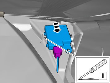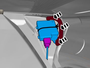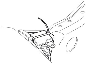 - Place the GPS antenna on the insulation mat at the A-post as illustrated.