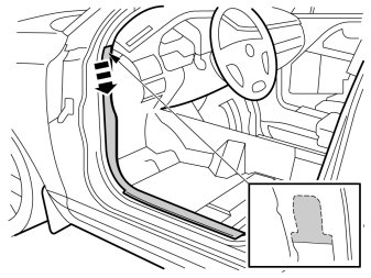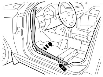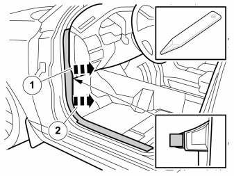 - Remove the sill trim panel by first pulling it forward until the clips in the front edge release. Then pull it upward until the clips in the top edge release.